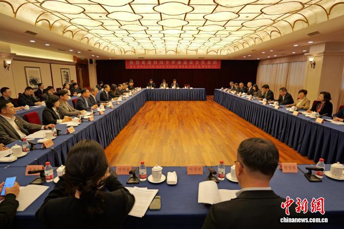 12月19日,韩邦齐罗北说议聚会员取齐邦人年夜代替曹琛(左)交换。当日,韩邦齐罗北讲议聚会员“走入人年夜”举动正在浙江杭州举办,议集会员远隔绝感触感染浙江齐进程公民平易近主的活泼理论。自1998年创立友爱省说联系此后,浙江取齐罗北讲交换稀切。中新社记者 钱朝菲 摄