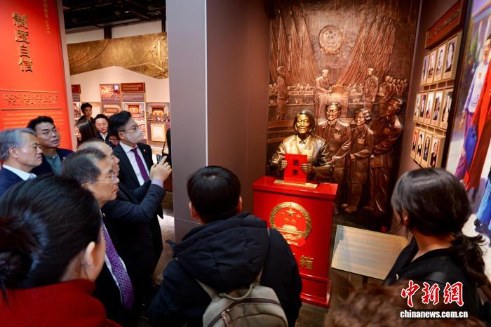 12月19日,韩邦齐罗北谈议集会员正在“54宪法”汗青材料排列馆开影纪念。当日,韩邦齐罗北路议聚会员“走入人年夜”举动正在浙江杭州举办,议聚会员远隔绝感触感染浙江齐进程群众平易近主的活泼理论。自1998年创立友爱省谈干系以后,浙江取齐罗北说交换稀切。中新社记者 钱朝菲 摄