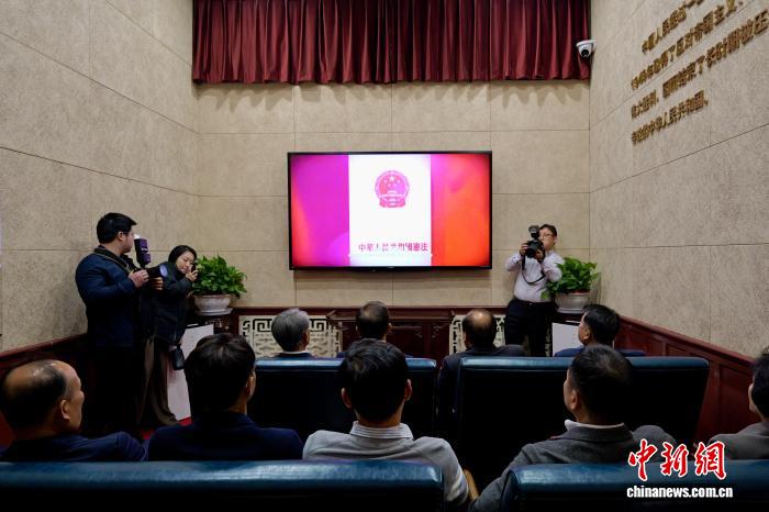 12月19日,韩邦齐罗北讲议聚会员经由过程瞅频领会新华夏第1部宪法的草拟进程。当日,韩邦齐罗北说议聚会员“走入人年夜”举动正在浙江杭州举办,议集会员远隔断感触感染浙江齐进程群众平易近主的活泼理论。自1998年创立友爱省讲相关此后,浙江取齐罗北讲交换稀切。中新社记者 钱朝菲 摄