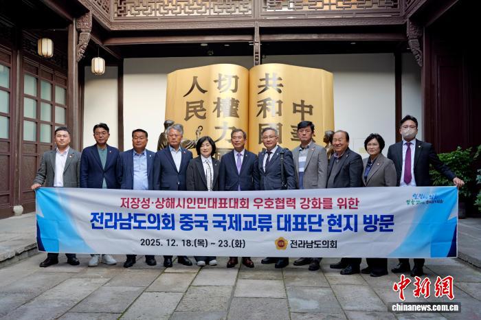 12月19日,韩邦齐罗北讲议会代替团成员正在杭州市齐进程黎民平易近主理论主题摄影。当日,韩邦齐罗北讲议聚会员“走入人年夜”举动正在浙江杭州举办,议集会员远间隔感触感染浙江齐进程群众平易近主的活泼理论。自1998年创立友爱省讲相关此后,浙江取齐罗北路交换稀切。中新社记者 钱朝菲 摄